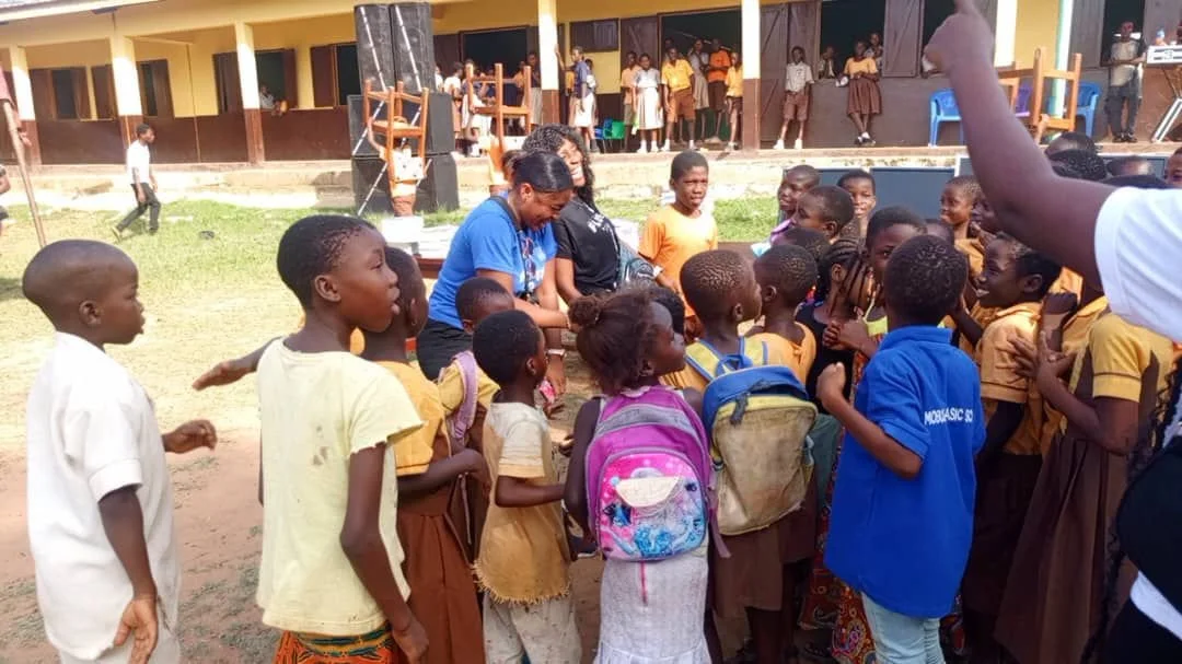 Founder and Vice President of the Flute Charity Foundation, Nana Abena Bempomah Asante donates to Miaso Krobo D.A Basic School.