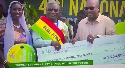 Adusei received a ₵1.2 million cash prize from the Agricultural Development Bank (ADB), a brand-new tractor from the Ministry of Food and Agriculture, a gold medal, a citation, and various farm inputs in recognition of his outstanding achievements.